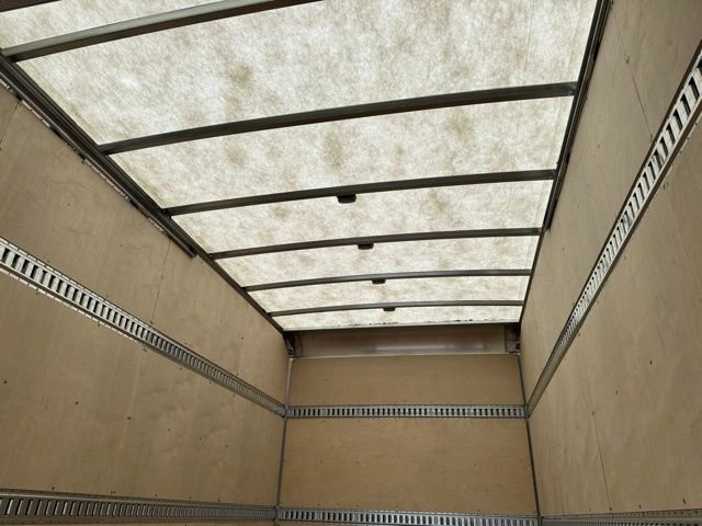 This truck carries a 19,500-lb GVWR and is equipped with a U.S. Truck Body 16' VA-90 aluminum box body built for long-term work-truck durability. The aluminum van body gives your business a strong, corrosion-resistant cargo solution that is well suited for demanding commercial applications. Body specs include a 16' inside length, 96 body width, 97 body height, 93 inside width, 90 inside height, rear roll-up door, 88 door width, 84.5 door height, translucent roof, .040 pre-painted white side construction, side wall Z-posts on 16 centers, 3/8 plywood liner, 1-1/8 laminated hardwood floor, and a 14' aluminum walkramp. It also includes recessed E-Track on each side at 24 and 60 floor to center, plus four LED interior dome lights switched at the rear. This setup gives you a highly usable enclosed cargo area for moving tools, parts, equipment, inventory, packaged goods, or route deliveries with added load control and loading convenience.
