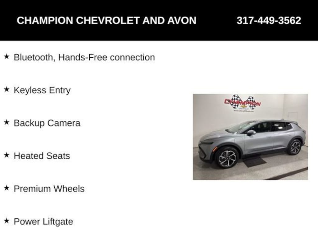 Bluetooth, Hands-Free connection, Keyless Entry, Backup Camera, Heated Seats, Premium Wheels, Power Liftgate.Tax, title, license and $249.00 document preparation fee are extra. Pricing will not include additional installed accessories. Not available with special finance or lease offers. We make every reasonable effort possible to present information and pricing that is true and accurate. Some information provided may come from third party sources. To ensure your complete satisfaction, please verify the accuracy prior to your purchase. It is the responsibility of the consumer to verify the accuracy of information listed.117/100 City/Highway MPG . See dealer for details. Dealer is not responsible for typographical or other errors in pricing. Price may not include installed accessories. Price includes: *$2000 - GM Consumer Cash Program. Applies To All Consumers Exp. 01/02/2026