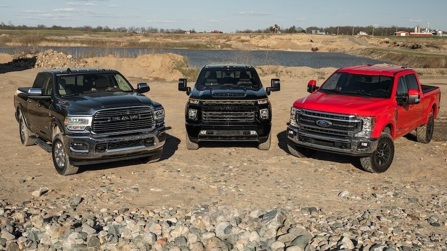 2021 Chevrolet Silverado Z71 LTZ (2500 HD 4X4 Carhartt) | 2021 Ford F-250 Super Duty Lariat Tremor 6.7L Power Stroke Turbo Diesel | 2021 Ram 2500 Heavy Duty Laramie 4x4 Cummins Turbo Diesel | |