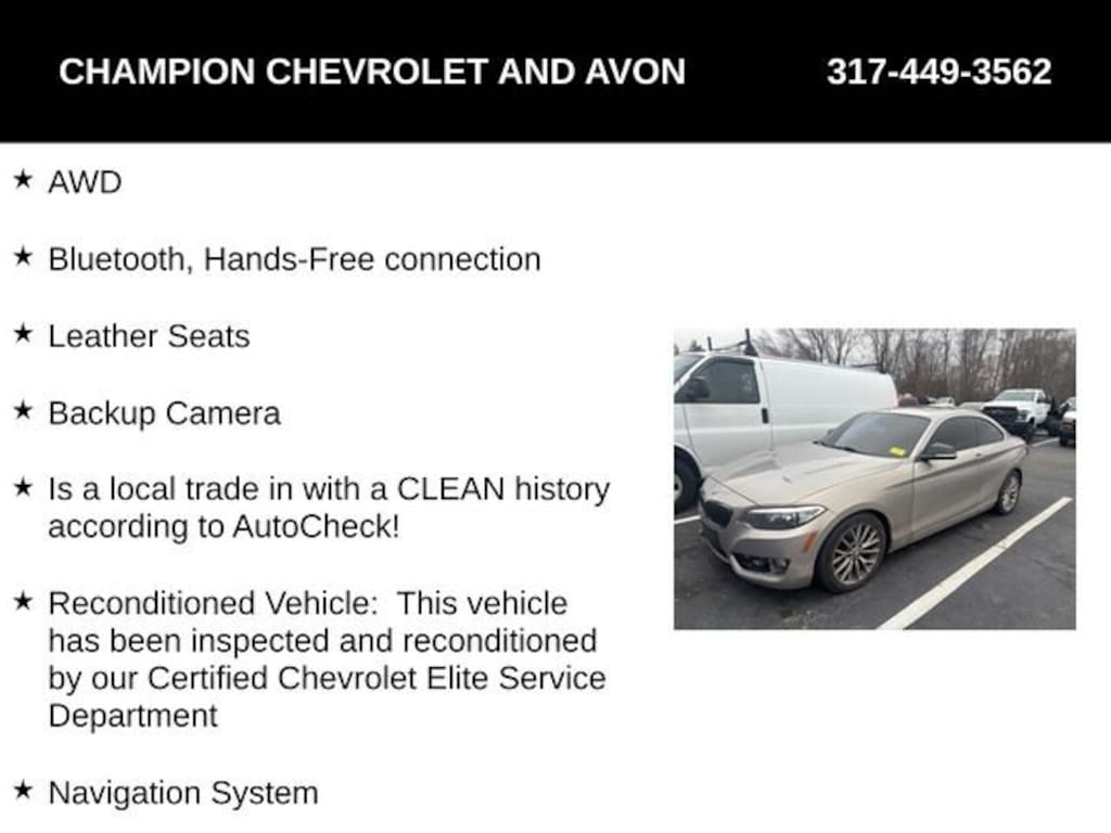 Being my first car, its going to hard for me to get something that matches the fun of this. Its light, agile and very fun to throw around while driving. I opted for the M Sport package giving a stiffer suspension and certain styling accents, but the package makes the car what it is. Acceleration is on point, and when sport mode is enabled the suspension stiffens up and shifts are shorter, making the vehicle that much tighter. As far as the interior, standard BMW perfection. Nav system is in my opinion the best of any car brand. Only major drawback looking at everything now is that this is a two door, but you live and learn. Not sure if this applies to MY17 cars but run flat tires are standard. Now this is good if you live in SoCal or Florida, but on the East Coast, our brutal winters have forced me to replace a lot of these which is very aggravating. Not sure who at corporate decided to outfit the 2 series with standard run flats but this is very annoying. They really should consider there market before deciding which tires to make standard on vehicles. In conclusion, a fun, agile, responsive, sports coupe. One the best I will probably every own.… - 5.0