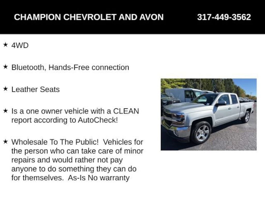 4WD, Bluetooth, Hands-Free connection, Leather Seats, Is a one owner vehicle with a CLEAN report according to AutoCheck!, Wholesale To The Public! Vehicles for the person who can take care of minor repairs and would rather not pay anyone to do something they can do for themselves. As-Is No warranty, 6-Speed Automatic Electronic with Overdrive, 4WD, Black Leather, 110-Volt AC Power Outlet, Dual-Zone Automatic Climate Control, Electric Rear-Window Defogger, Heavy-Duty Rear Locking Differential, LT Convenience Package, Rear Vision Camera w/Dynamic Guide Lines, Remote Vehicle Starter System, Thin Profile LED Fog Lamps, Trailering Package.Tax, title, license and $249.00 document preparation fee are extra. We make every reasonable effort possible to present information and pricing that is true and accurate. Some information provided may come from third party sources. To ensure your complete satisfaction, please verify the accuracy prior to your purchase. It is the responsibility of the consumer to verify the accuracy of information listed.