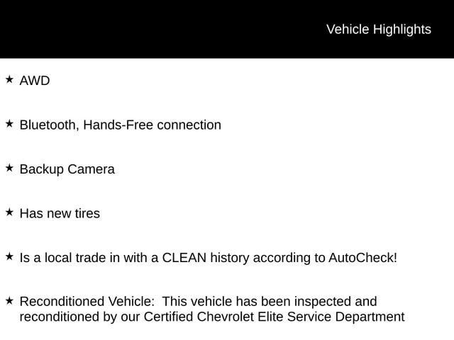 - Reconditioned Vehicle: This vehicle has been inspected and reconditioned by our Certified Chevrolet Elite Service Department