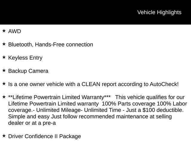 - Lifetime Powertrain Limited Warranty with 100% Parts and Labor coverage