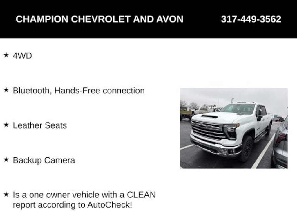 4WD, Bluetooth, Hands-Free connection, Leather Seats, Backup Camera, Is a one owner vehicle with a CLEAN report according to AutoCheck!, **Lifetime Powertrain Limited Warranty*** This vehicle qualifies for our Lifetime Powertrain Limited warranty 100% Parts coverage 100% Labor coverage.- Unlimited Mileage- Unlimited Time - Just a $100 deductible. Simple and easy Just follow recommended maintenance at selling dealer or at a pre-a, 10-Speed Automatic, 4WD, Jet Black Leather, 120-Volt Bed Mounted Power Outlet, 120-Volt Interior Power Outlet, 15 Diagonal Multicolor Head-Up Display, 170 Amp Alternator, 6-Speaker Audio System, 6 Rectangular Chromed Tubular Assist Steps, Adaptive Cruise Control, Auto-Dimming Inside Rear-View Mirror, Bed View Camera w/2 Trailer Camera Provisions, Black Name Plates (LPO), Black Tailgate Lettering (LPO), Bluetooth® For Phone, BOSE Premium 7-Speaker Sound System, Chevrolet Connected Access Capable, Chrome Door Handles, Chrome Mirror Caps, Color-Keyed Carpeting Floor Covering, Compass, Dark Essentials Package (LPO), Deep-Tinted Glass, Electric Rear-Window Defogger, Electronic Cruise Control w/Set & Resume Speed, EZ Lift Power Lock & Release Tailgate, Floor-Mounted Center Console, Front Black Bowtie Emblem (LPO), Front Bucket Seats, Front LED Fog Lamps, Front Rain-Sensing Wipers, Front Rubberized Vinyl Floor Mats, HD Rear Vision Camera, HD Surround Vision, Heated 2nd Row Outboard Seats, Heated Steering Wheel, Hitch Guidance w/Hitch View, In-Vehicle Trailering App System, Keyless Open & Start, LED Cargo Area Lighting, LTZ Convenience Package, LTZ Convenience Package II, Manual Tilt & Telescoping Steering Column, OnStar & Chevrolet Connected Services Capable, Power Door Locks, Power Front Windows w/Driver Express Up/Down, Power Front Windows w/Passenger Express Up/Down, Power Rear Windows w/Express Down, Power Sliding Rear Window w/Defogger, Preferred Equipment Group 1LZ, Push Button Start, Rear Camera Mirror, Rear Cross Traffic Alert, Rear Rubberized Vinyl Floor Mats, Rear Wheelhouse Liners, Remote Vehicle Starter System, Safety Alert Seat, Safety Package, SiriusXM w/360L, Standard Tailgate, Steering Wheel Audio Controls, Suspension Package, Technology Package, Trailer Camera Provisions, Trailer Side Blind Zone Alert, Ultrasonic Front & Rear Park Assist, Unauthorized Entry Theft-Deterrent System, Universal Home Remote, Up-Level Rear Seat w/Storage Package, Ventilated Driver & Front Passenger Seats, Wi-Fi Hotspot Capable, Wireless Charging, Wireless Phone Projection, Wrapped Steering Wheel.