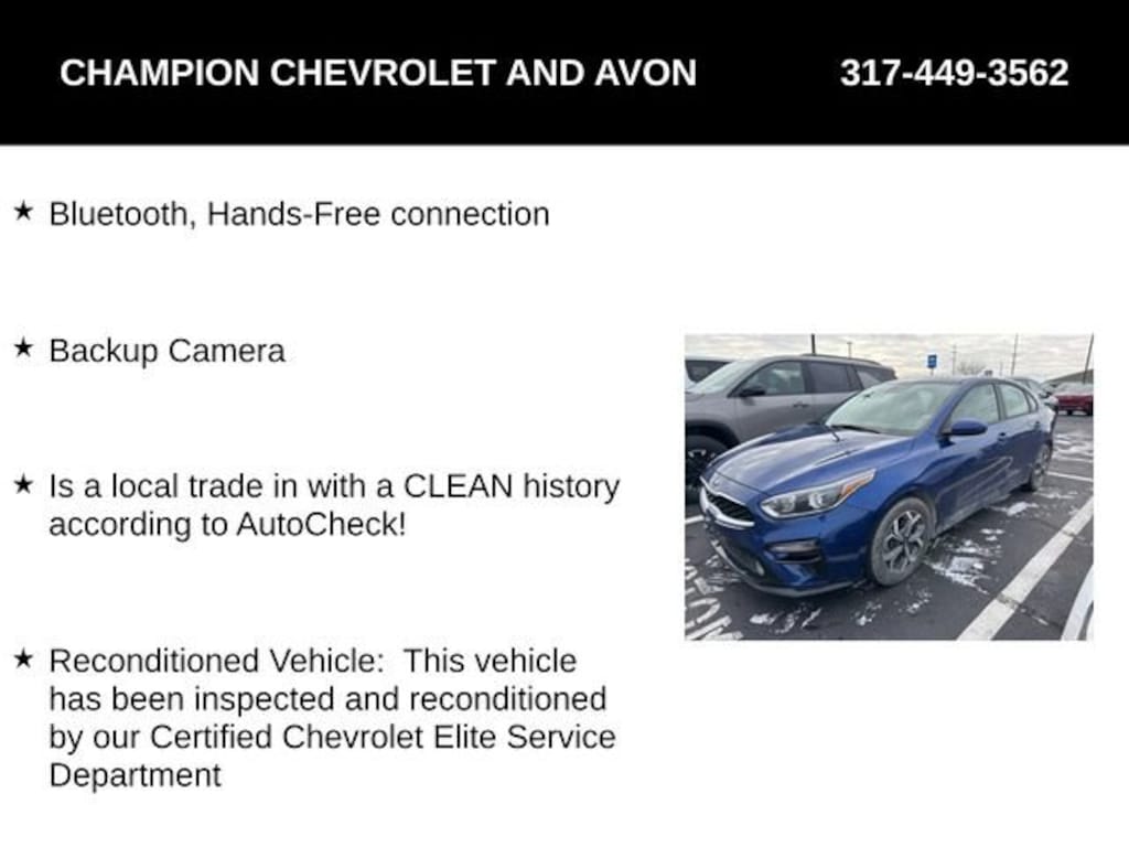 Bluetooth, Hands-Free connection, Backup Camera, Is a local trade in with a CLEAN history according to AutoCheck!, Reconditioned Vehicle: This vehicle has been inspected and reconditioned by our Certified Chevrolet Elite Service Department.