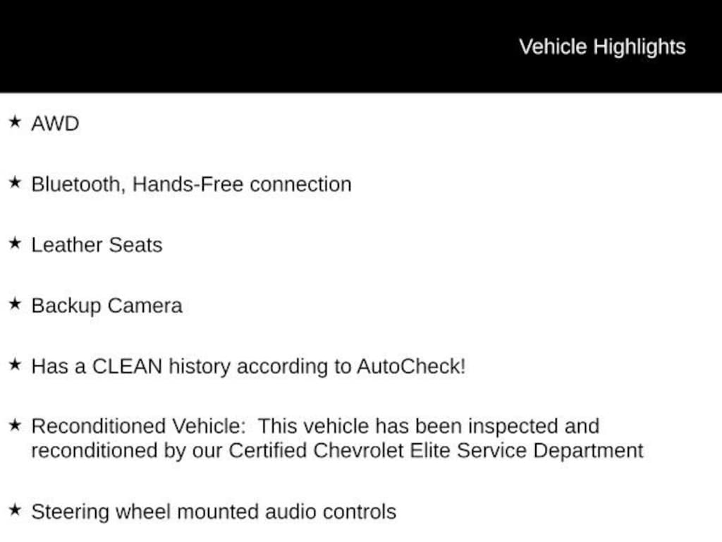 AWD, Bluetooth, Hands-Free connection, Leather Seats, Backup Camera, Has a CLEAN history according to AutoCheck!, Reconditioned Vehicle: This vehicle has been inspected and reconditioned by our Certified Chevrolet Elite Service Department, 4MATIC®, Steering wheel mounted audio controls.Odometer is 37943 miles below market average! 24/31 City/Highway MPGTax, title, license and $249.00 document preparation fee are extra. We make every reasonable effort possible to present information and pricing that is true and accurate. Some information provided may come from third party sources. To ensure your complete satisfaction, please verify the accuracy prior to your purchase. It is the responsibility of the consumer to verify the accuracy of information listed.