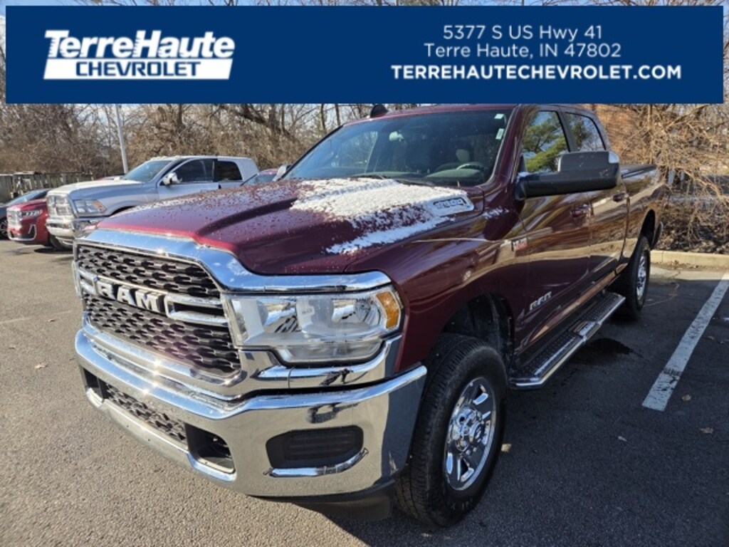 LARGEST VOLUME DEALER IN THE WABASH VALLEY!! HOME OF THE LIFETIME POWERTRAIN WARRANTY!!Price does not include applicable Tax, Title, Destination Fee, License, Processing and $249 Dealer Documentation fee, finance charges, emissions testing charges, or other fees required by law. Quick Order Package 2GZ Big Horn, 2 Way Rear Headrest Seat, 3.73 Axle Ratio, 4 Way Front Headrests, 4-Wheel Disc Brakes, 40/20/40 Split Bench Seat, 4G LTE Wi-Fi Hot Spot, 6 Speakers, 8.4" Touchscreen Display, ABS brakes, Active Noise Control System, Air Conditioning, AM/FM radio: SiriusXM, Apple CarPlay, Apple CarPlay/Android Auto, Bluetooth Handsfree Phone & Audio, Brake assist, Bumpers: chrome, Center Hub, Center Stack Storage Drawer, Chrome Flat Cab-Length Side Steps, Cloth 40/20/40 Bench Seat, Compass, Connectivity - US/Canada, Delay-off headlights, Driver door bin, Dual front impact airbags, Dual front side impact airbags, Electronic Stability Control, Electronically Controlled Throttle, Front anti-roll bar, Front Center Armrest w/Storage, Front License Plate Bracket, Front reading lights, Fully automatic headlights, Global Telematics Box Module (TBM), Google Android Auto, GPS Antenna Input, Heated door mirrors, Illuminated entry, Integrated Center Stack Radio, Integrated Voice Command w/Bluetooth, Low tire pressure warning, Manual Adjust 4-Way Driver Seat, Manufacturer's Statement of Origin, Occupant sensing airbag, Outside temperature display, Overhead airbag, Overhead console, Panic alarm, ParkView Rear Back-Up Camera, Passenger door bin, Passenger vanity mirror, Power door mirrors, Power steering, Power windows, Radio data system, Radio: Uconnect 5 W w/8.4" Display, Rear anti-roll bar, Rear Folding Seat, Rear seat center armrest, Rear step bumper, Remote keyless entry, Selectable Tire Fill Alert, SiriusXM Radio Service, SiriusXM Satellite Radio, Speed control, Tachometer, Tilt steering wheel, Tip Start, Traction control, Trip computer, Turn signal indicator mirrors, Variably intermittent wipers, Vendor Painted Cargo Box, Vendor Painted Cargo Box Tracking, Voltmeter, and Wheels: 18" x 8.0" Steel Chrome Clad.