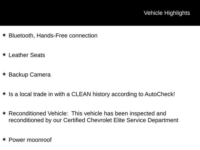 - Reconditioned Vehicle: Inspected and reconditioned by our Certified Chevrolet Elite Service Department